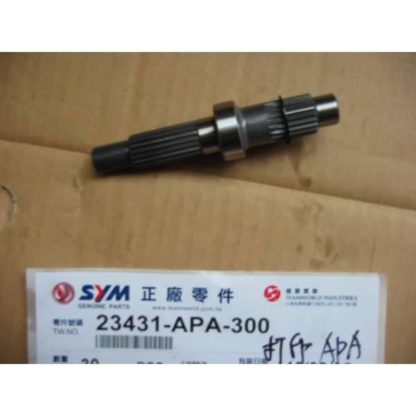 Beschrijving Het onderdeel arbre final referentie 23431-APA-300 is een origineel onderdeel van de fabrikant SYM en is exact hetzelfde als dat gemonteerd aan de uitgang van de fabriek van het voertuig.