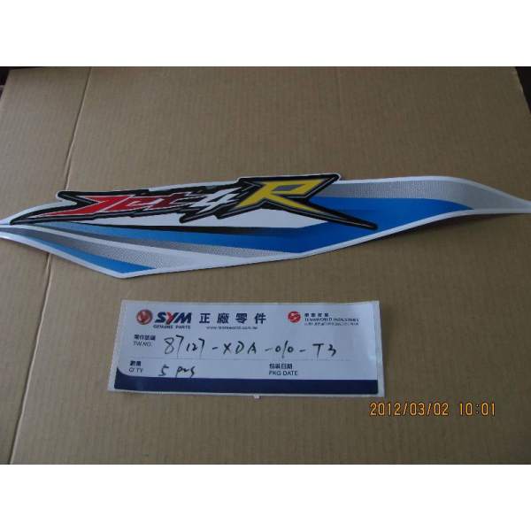 Beschrijving Het onderdeel autocollant flanc droit referentie 87127-XDA-010-T3 is een origineel onderdeel van de fabrikant SYM en is exact hetzelfde als dat gemonteerd aan de uitgang van de fabriek van het voertuig.